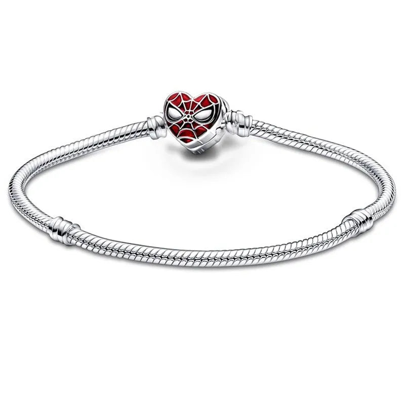 Съберете най-добрия си екип от герои с нашата гривна Marvel Spider-Man Mask Clasp. Съберете всички талисмани на Спайдърмен и ги стилизирайте върху тази гривна с маската на Спайдърмен в центъра. Стилизираната закопчалка със сърце включва ярки детайли, за да пресъздаде характерната маска. Оформете своята гривна с до 18 талисмана, висящи талисмани или висулки и оставете силните си страни да блеснат.